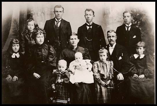 While living there, six more children were born to them. The names of these children were Emerald, Erma, Louise, and then a boy by the name of Lamar Thurgood Holt. The next two were girls named Bernice and Cleone. This was a very windy, sandy, country. As the wind blew, the sand would blow across the fields, and John had to work hard to provide for his large family. Farming was a hard project as many of the crops were blown out and had to be replanted. But John was not discouraged. At this time, John decided to plant an orchard of many kinds of fruit. He also grew many kinds of vegetables and as they ripened, he gathered them and took them to Salt Lake City to the market. He, with his family, worked long hours to produce his crops and harvest them to sell. At this time, also, he decided he needed more land to provide for his family. He bought more land and struggled to make it fruitful. The family decided they needed more room so a large home was built in the town they had named West Point.