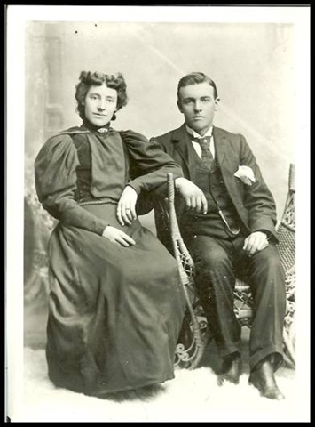 “When I was 18 years old, one night I went to a dance with my brother Roland. Before leaving for the dance, I told my mother that I was impressed that I would meet my future husband that evening. It was Christmas Eve. Sure enough, I met John William Holt who later became my husband. We danced together that evening and he asked to accompany me to my home, but I told him he would have to meet my mother first, which he did the next day. The following Sunday he came to see me in him “Bonnet Buggy” and we went to sacrament meeting together in the afternoon. We went together for two years on and off. Then we were married May 6, in the Salt Lake Temple. We moved up by his folks and Grandpa Holt was called on a mission to England and Grandma had at that time 10 children, the youngest 3 months old.”