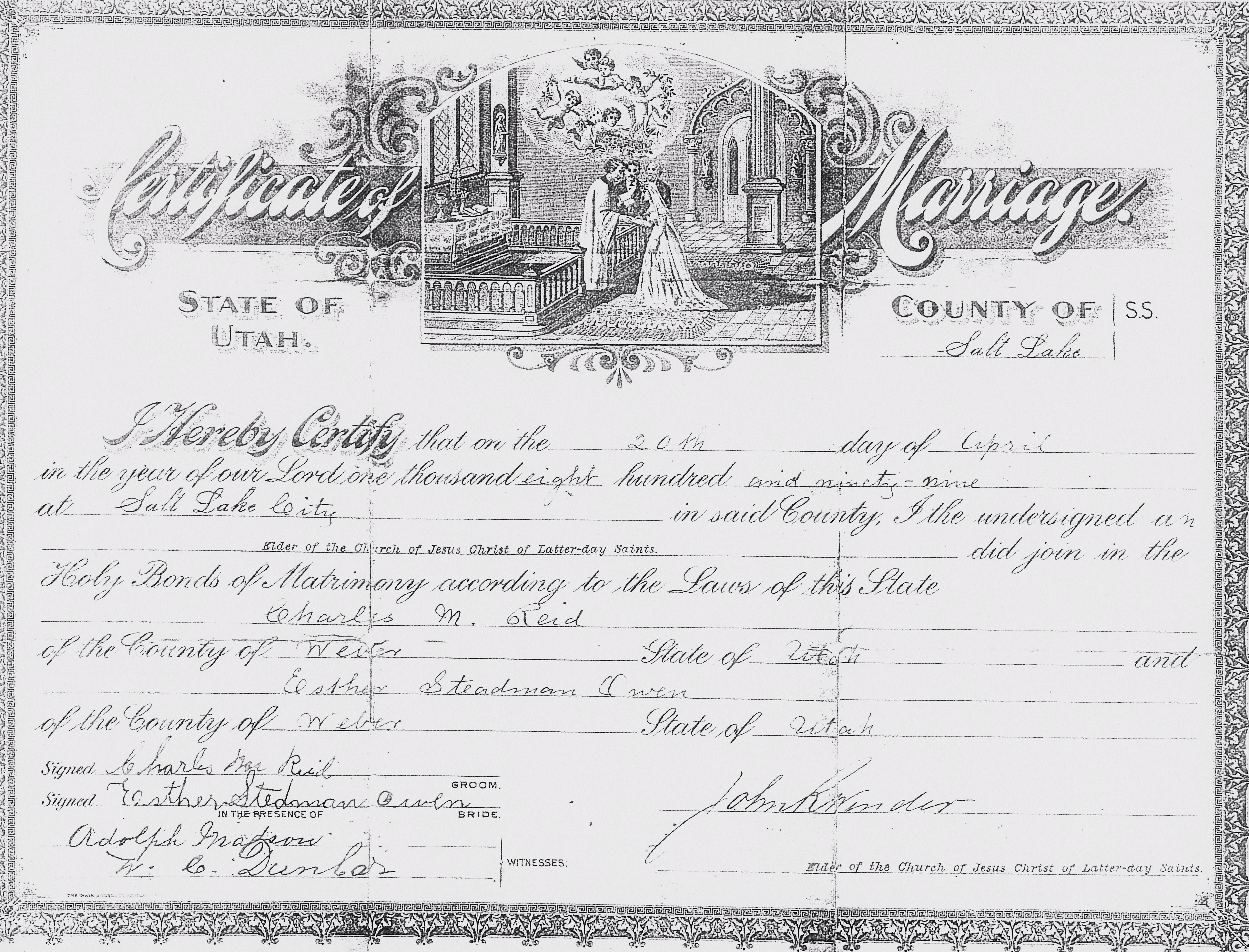 - 20 Apr 1899: married Esther Weir Stedman in Salt Lake City, Salt Lake County, Utah