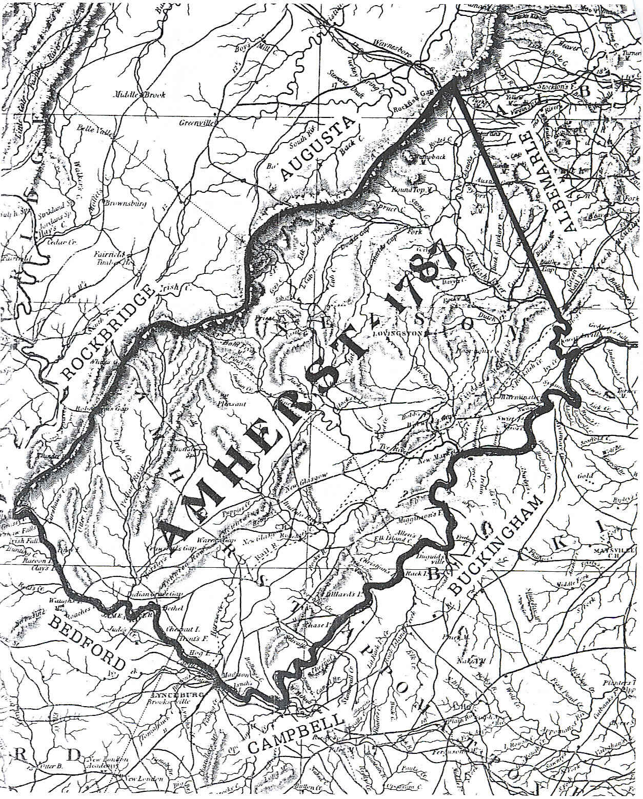 Jacob lived near, and possibly associated with, many of the residents of Lexington Parish, Amherst County including Ballews, Callaways, Colemans, Higginbothams, Pettyjohns, Ruckers, Statons, Wades, and Warrens. The area was known for its rolling hills, rich with timber, fertile soil, and division by small tributaries such as the Buffalo, Stoval, and Rockfish.